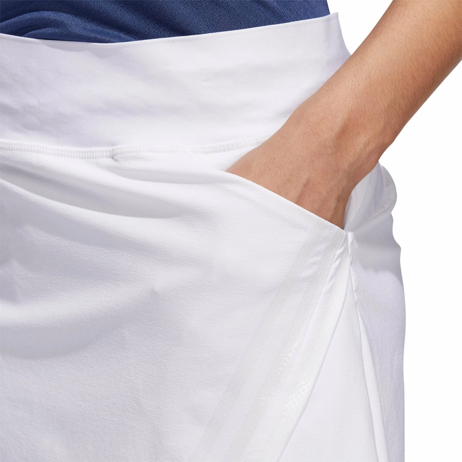 Elevate your look while staying comfortable in the Adidas 3-Stripes Golf Skort. This skort is comfortable and allows you to swing through all shots without feeling restricted and also feature a stay-put bonded waist that adds to the comfort. There are built-in shorts that provide additional coverage and front pockets and one back pocket provide plenty of space to store balls, tees, scorecard and other essentials for a fun round of golf. The UV 50+ factor will keep you protected from the harmful UV rays of the sun.