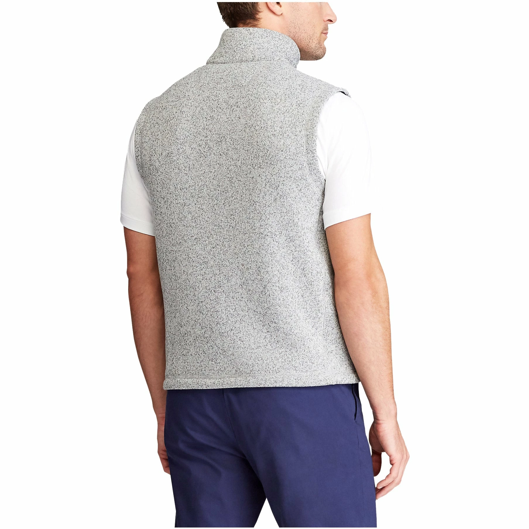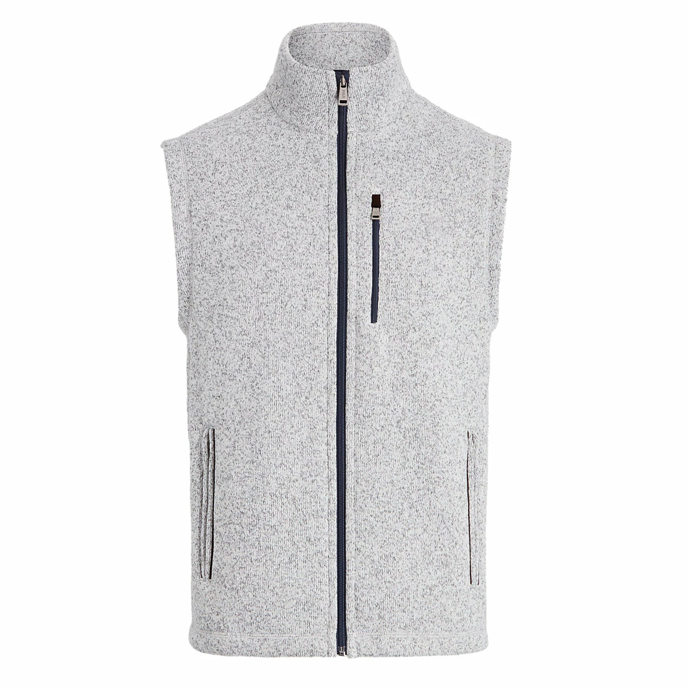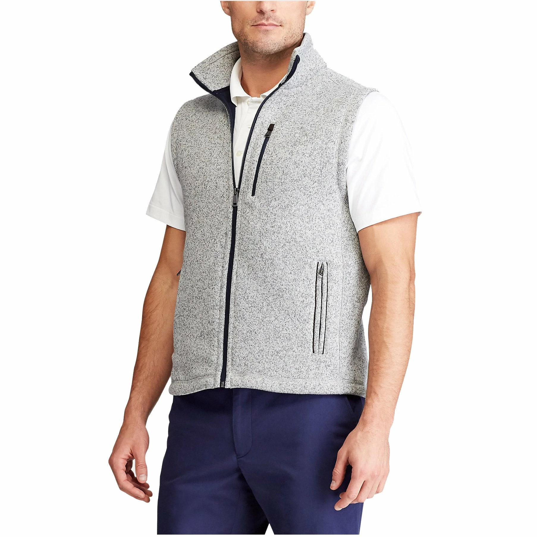 Get the look of a sweater with the cozy comfort of a fleece in the Polo Golf Madison Avenue Sweater Golf Fleece Vest. The mock neck provides golfers with added coverage and the full zip placket allows for easy on and off wear. There is a zip chest pocket and two zip waist pockets on the front that are great for storing small accessories.