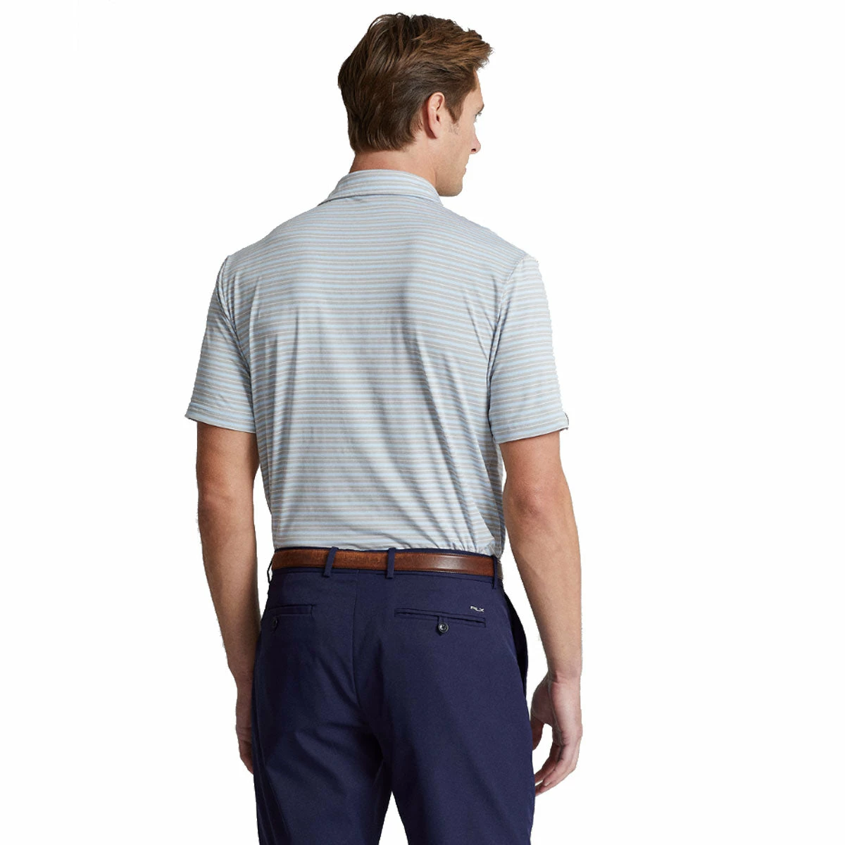 Built with a high quality knit, the RLX Ralph Lauren Featherweight Tri-Color Stripe Golf Polo just might be your new go-to golf top. This polo comes in a classic fit and is built with a moisture wicking fabric that pulls sweat from the body to keep golfers dry and comfortable throughout every round. The tri-color striped pattern provides golfers with a stylish look that will double as protection from the suns harmful rays.