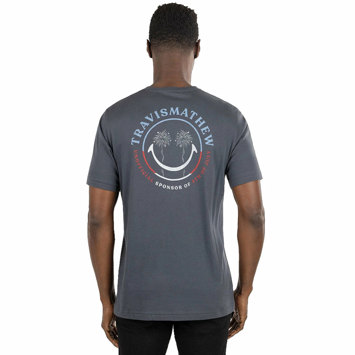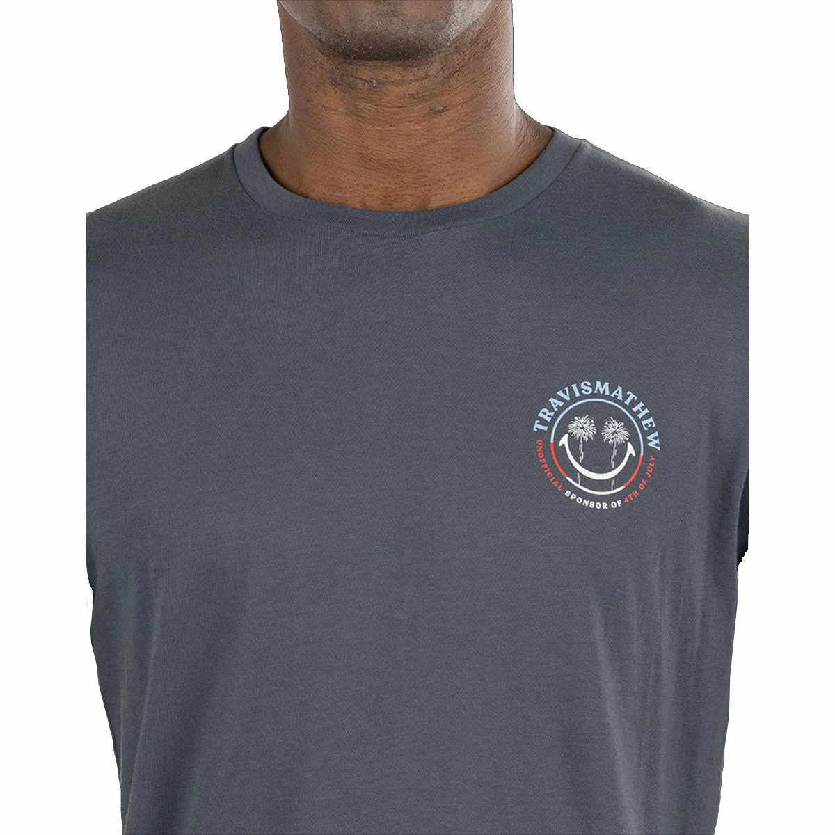 Perfect for a summer day at a backyard BBQ or for a night out on the town comes the TravisMathew Party Boss T-Shirt. The Party Boss tee is built with a polyester/spandex blend with an enhanced four-way stretch that provides supreme comfort throughout the golf swing. This tee is also moisture wicking to pull sweat from the body and keep you dry and comfortable throughout the round. The red, white and blue smiley face graphic on the back and left chest that are accented by strategically placed palm trees will have you looking good wherever you go.